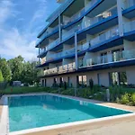 Mistral Residence 308 lägenhet ligger i Balatonföldvár, 600 meter från Bajor Gizi Kozossegi Haz, och erbjuder pool, säsongsöppen utomhusbassäng och trädgård. Det här boendet har en terrass, en kort bit från Cafe Publik och cirka 5 minuters promenad från Balatonföldvárs centrum.